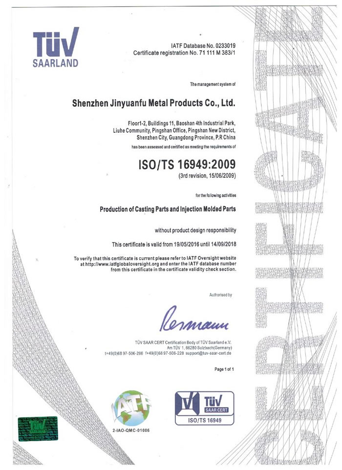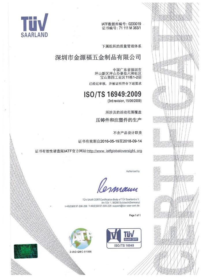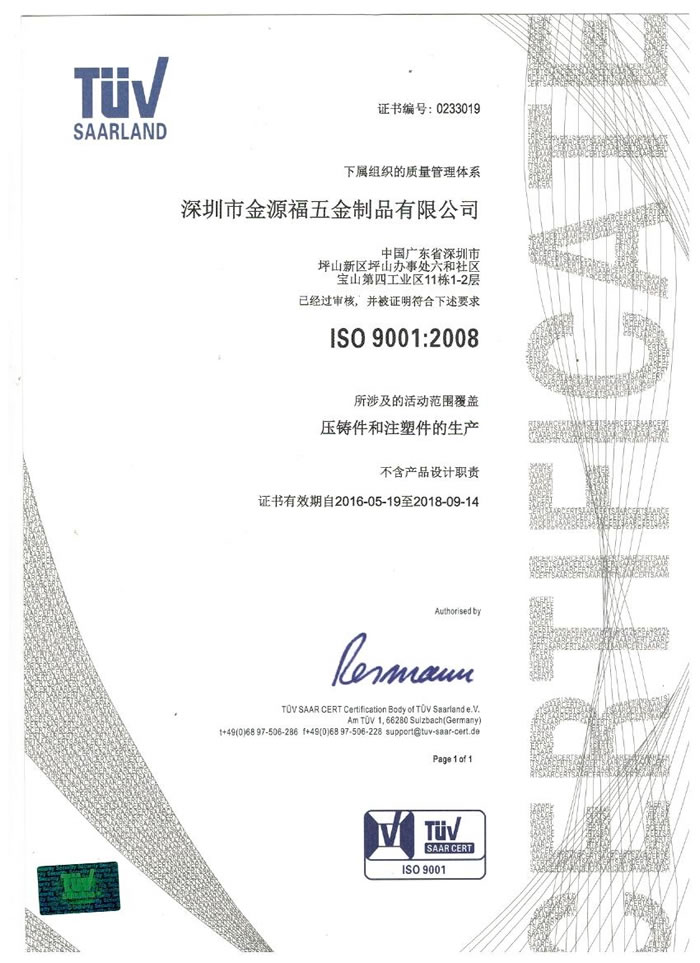 深圳市金源福五金制品有限公司成立于2003年。公司擁有8000多平方米生產(chǎn)廠地、開發(fā)與管理精英人才、技術(shù)專業(yè)、設(shè)備精良、交通便利、服務(wù)周全、具體設(shè)計、開發(fā)、制模、出樣、生產(chǎn)到成品出貨一體化模式生產(chǎn)廠家。已通過ISO9001:2008ISO1440/TS16949:2009國際質(zhì)量體系認證。專業(yè)生產(chǎn)鋅合金壓鑄、鋁合金壓鑄產(chǎn)品、汽車配件、汽車后視鏡支架、車載導航散熱器、LED散熱器、LED燈罩、數(shù)碼電子五金結(jié)構(gòu)件、家具五金裝飾件、標牌(LOGO)等五金壓鑄產(chǎn)品。